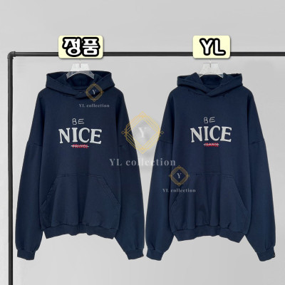 발렌시아가 로고 후드 티셔츠 마린블루