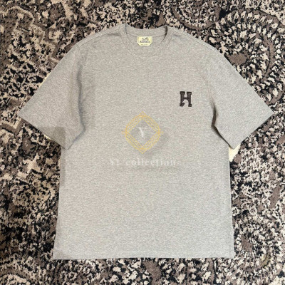 에르메스 H Cheval 가죽 디테일 반팔 티셔츠
