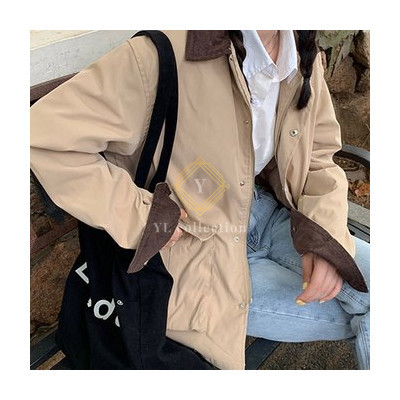 여성 루즈핏 배색 포켓 점퍼